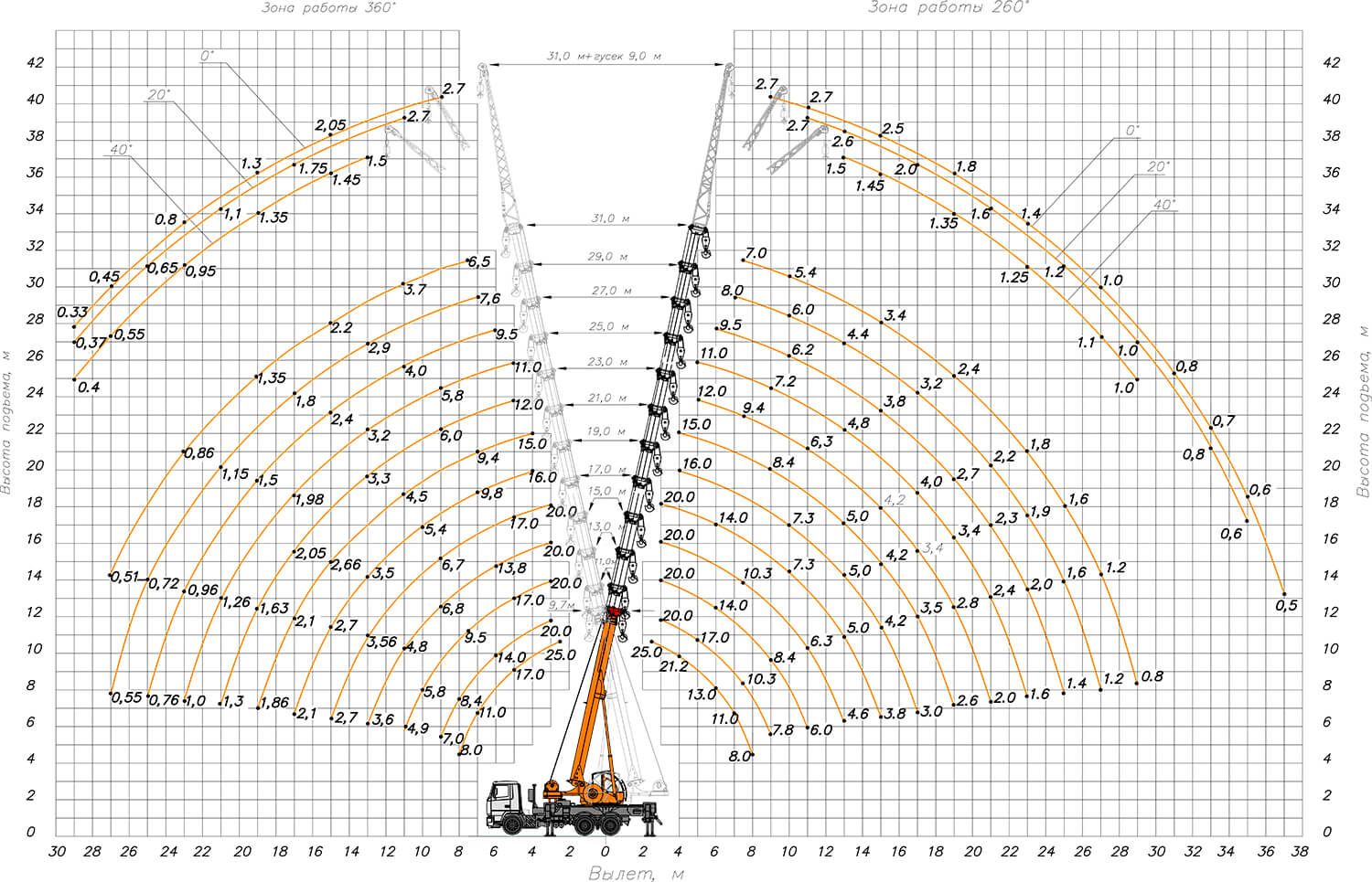 | Максимальная высота подъема крюка с основной стрелой, м | 31 |